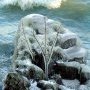 Les embruns des vagues frappent une roche et se déposent en fines gouttelettes sur quelques branches. L’objectif de l’appareil photo se recouvre de fins cristaux portés par le vent. Je dois quitter les lieux pour ne pas geler sur place telle les quelques statues du parc. Brrrrrrr