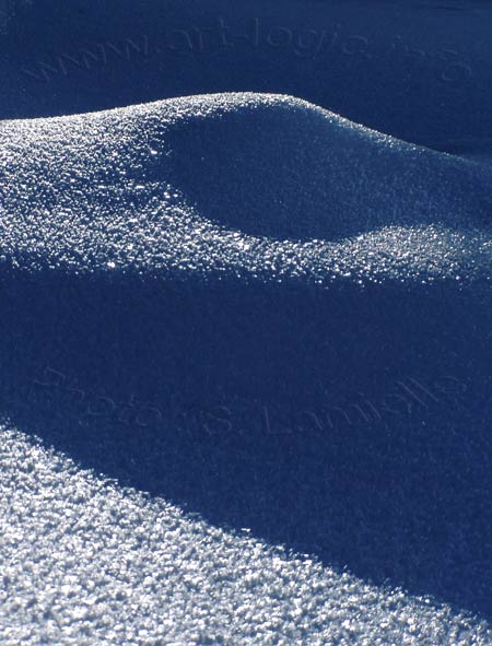 Homogene or not structured snow is difficult to photograph. White or reflecting the sky, snow does not have contrast. The search for volumes, curves, grains, shadows is recommended to take snowed photos.